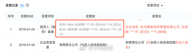 1月7日消息,据企查查显示,1月4日,马云和谢世煌退出浙江淘宝网络有限公司的股权备案,新增杭州臻希投资管理有限公司作为唯一股东。
