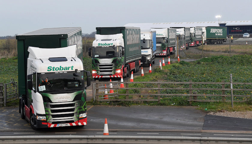 事到如今,英国也不得不开始做最坏的打算。当地时间7日上午,超过100辆重型货车从肯特郡已经关闭的曼斯特机场出发,驾驶20英里路程到达多佛尔港口。这是距离法国最近的英国港口。