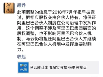 同时,早前阿里巴巴CEO助理颜乔回应称,此项调整的信息于2018年7月年报早披露过。把相应股权交由合伙人持有,将保证阿里巴巴合伙人制度在公司治理中发挥作用。