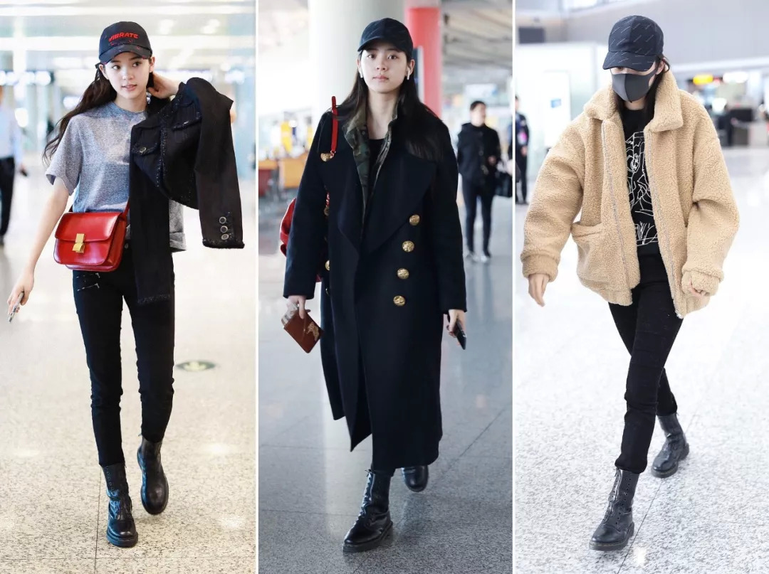 不过,娜娜的马丁靴搭配还是可以copy一下的。其实她也没玩太多花样,无一例外全都搭配黑色修身裤