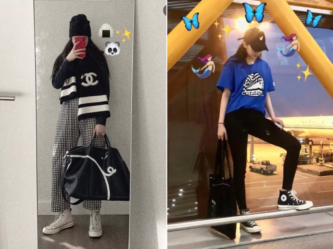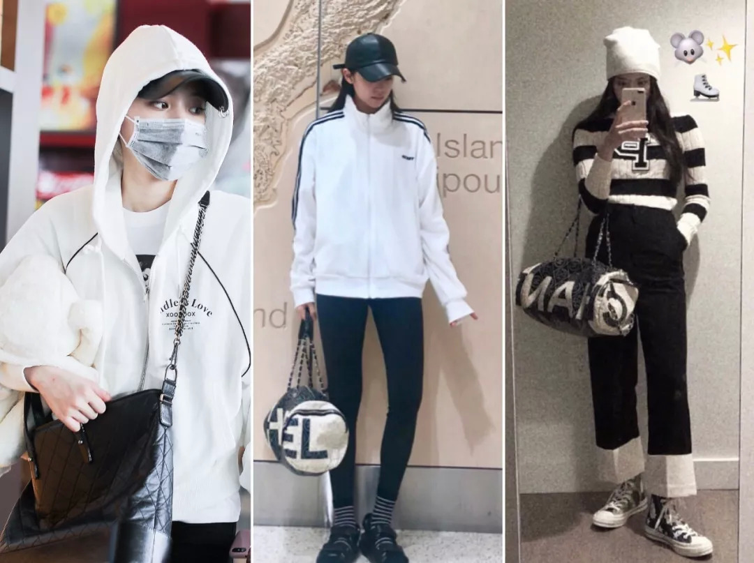 不光如此,欧阳娜娜还有几只特殊材质的包包。最常背的就是Chanel的羊羔毛包和Maison Margiela的太空枕头包。本来很普通日常的look一下就出挑了,变得不再boring!