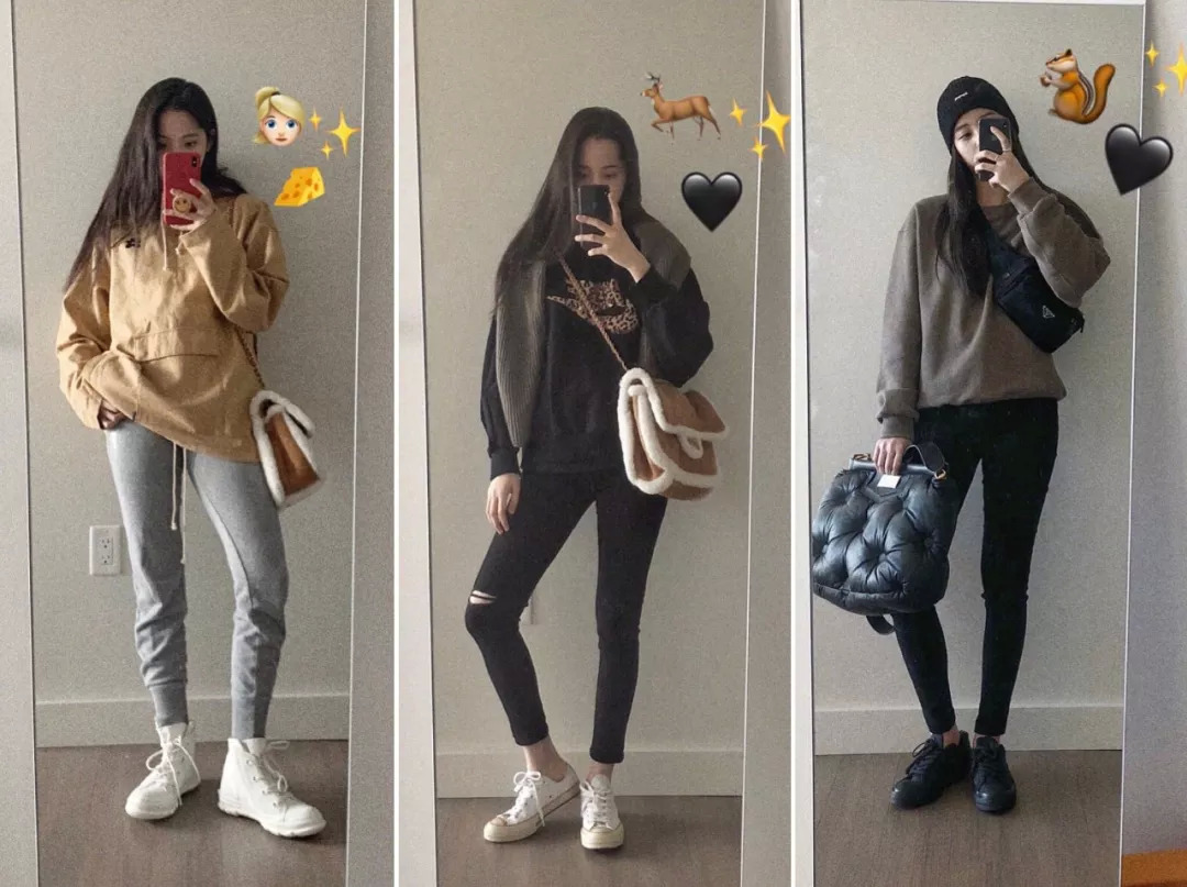 而且,娜比的卫衣look非常好借鉴,且相当实穿。她有自己清晰的搭配&挑选套路。