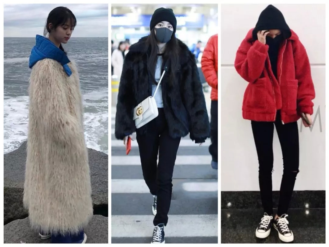 她还有用匡威鞋搭配仿皮草这种容易老气的单品,两者刚好中和一下,成熟感刚刚好。