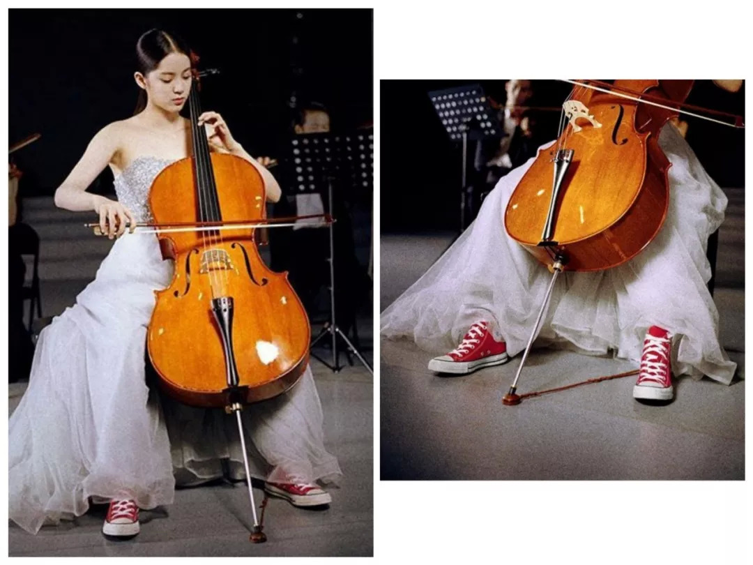 甚至在大提琴表演时,她也在仙仙的礼服裙下面,藏了一双红色的匡威鞋。哈哈,有趣的小女生心思~