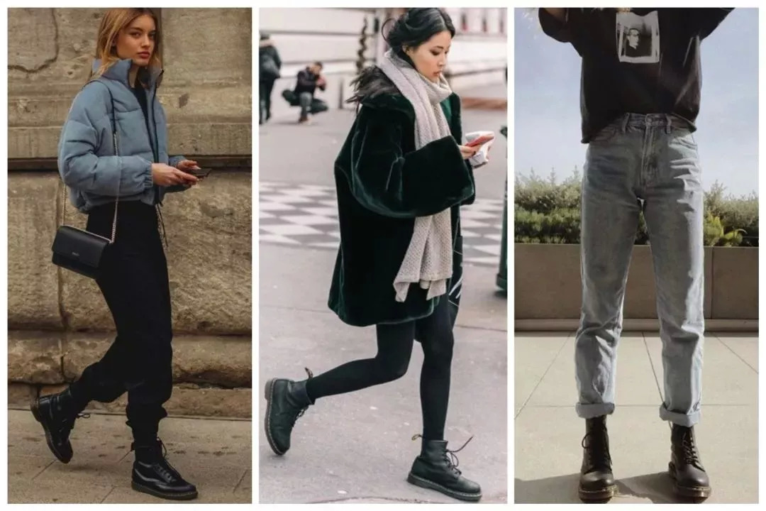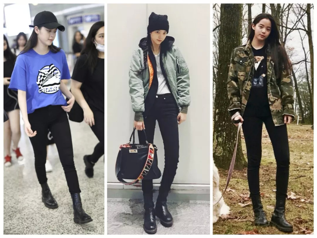 这样穿的确能突出她的大长腿优势啊!但对于一般人来说,还是搭配宽腿裤,或者把靴筒系松一点,更显瘦一点。