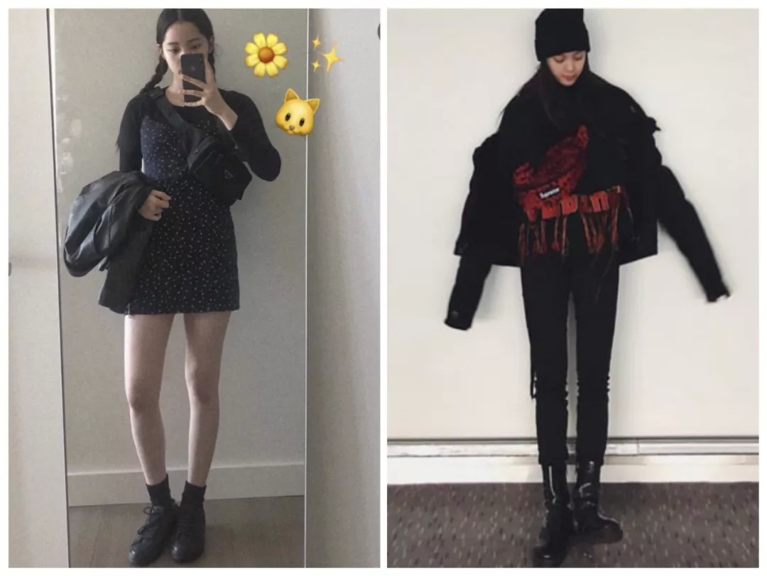 比如,穿最多的黑色卫衣,搭配上,她一般都会选择all black look。不费心思,就能达到高高瘦瘦,一酷到底的效果。