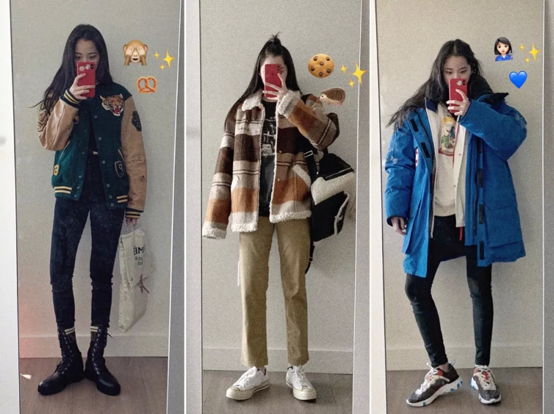 此外,娜娜还有一点做的很好。用宽松的T恤、卫衣、夹克,搭配修身的内搭和裤装,打造松紧配的组合。配上高腰线,显得人更加精神~
