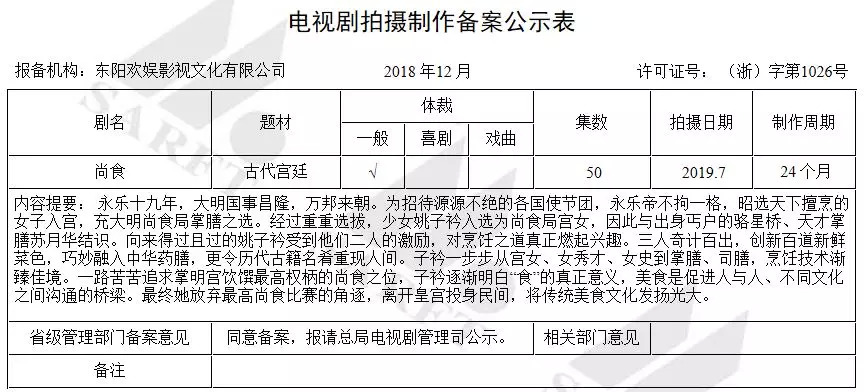 而这些信息都出自昨天下午广电总局官方网站上发布《广电总局关于2018年12月全国拍摄制作电视剧备案公示的通知》和《2018年12月电视剧月报备案通报》两份官方文件中。
