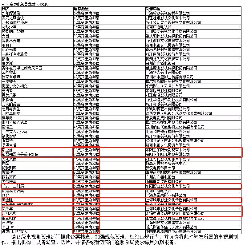 按照我国现行的影视剧管理体制,电视剧开拍之前一般都需要在广电总局备案,提交剧名、梗概等简单信息,过审后才能拍摄;而电视剧上映之前,如果剧名、集数、制作单位等关键信息发生了变化,则需再次报备,以让市场信息更透明。