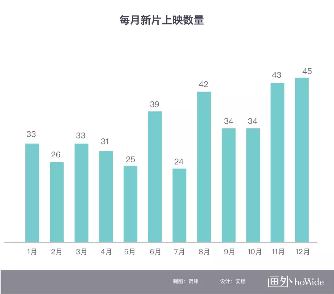 每月新片上映数量如下图所示: