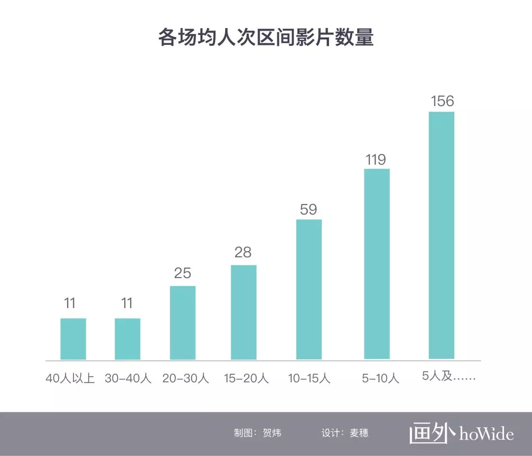 各场均人次区间影片数量如下图所示: