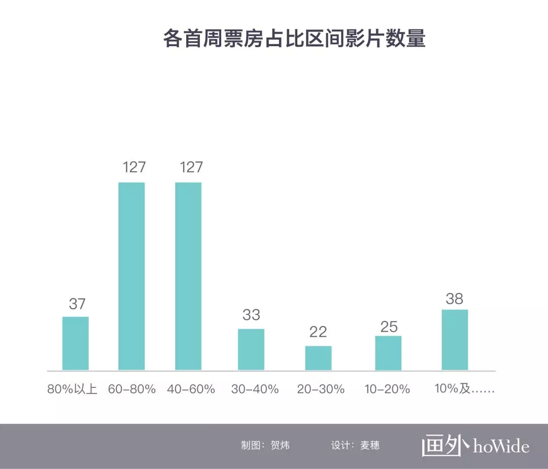 各首周票房占比区间影片数量如下图所示: