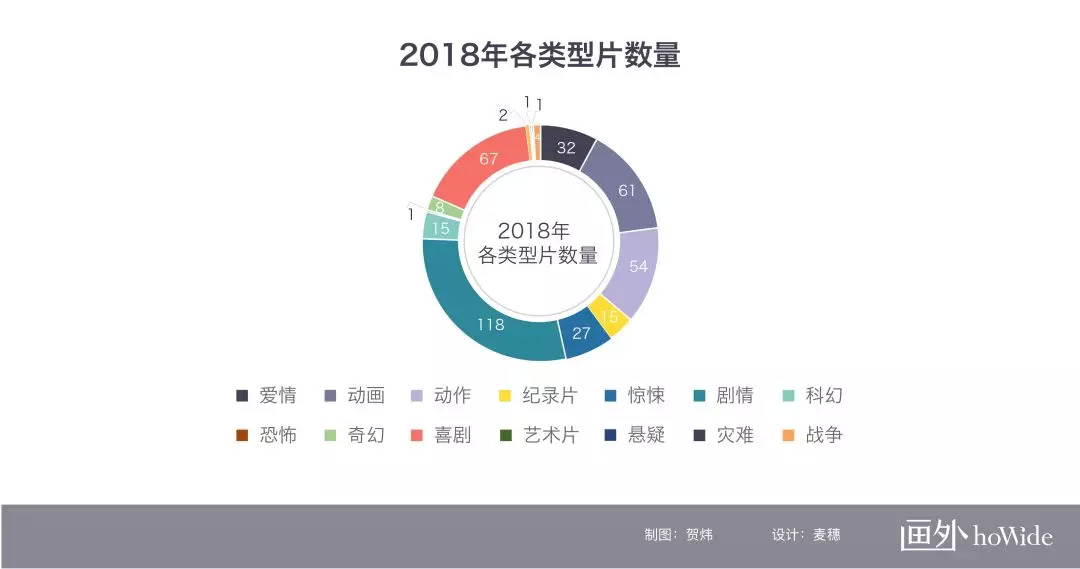 2018年类型片数量分布如下图所示: