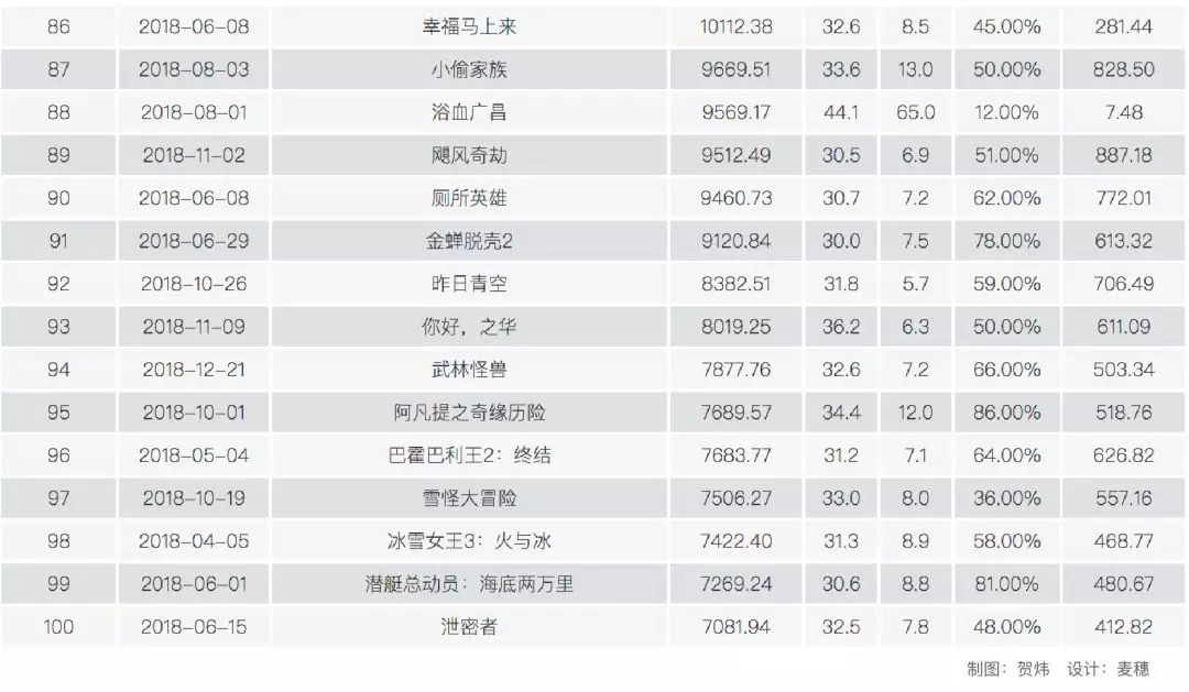 附表一:票房前100名影片名单