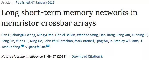特别是马萨诸塞大学阿默斯特分校的研究人员分析忆阻器交叉开关阵列中LSTM的论文(见下),作者当中有不少中国留学生。