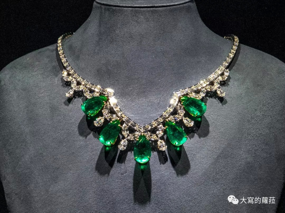 天然祖母绿又成色与内含物都优美的并不多,经常有被处理过的祖母绿以优化宝石的表现,因此在购买的时候,多半都会被叮咛要注意鉴定书上包含处理方式的说明来判定。上个月在上海的一个展览中,见到Harry Winston最新的高级珠宝设计“New York”系列中,有不少以祖母绿宝石为创作的作品,其中一件以纽约天主教圣帕特里克大教堂为灵感的颈链(也是最昂贵的一件作品),以五颗水滴型切割的祖母绿与钻石,描绘出俯瞰圣帕里特里大教堂绿色与白色交错的轮廓,绿色是教堂圆顶,白色是建筑体本身。