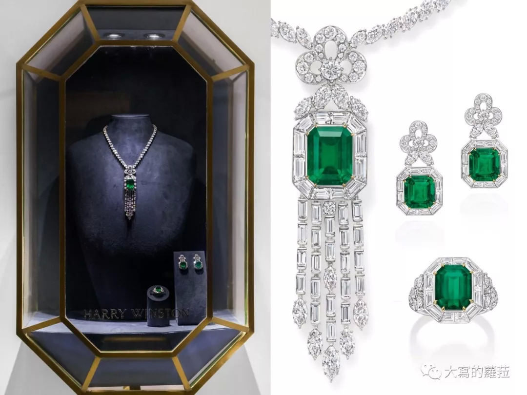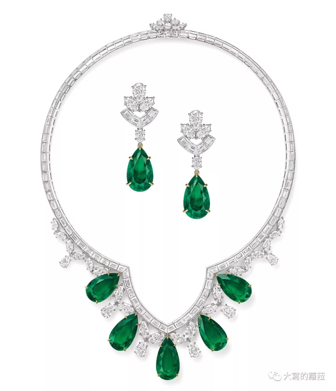 △ 海瑞温斯顿New York系列中Cathedral祖母绿配钻石项链与耳环。
