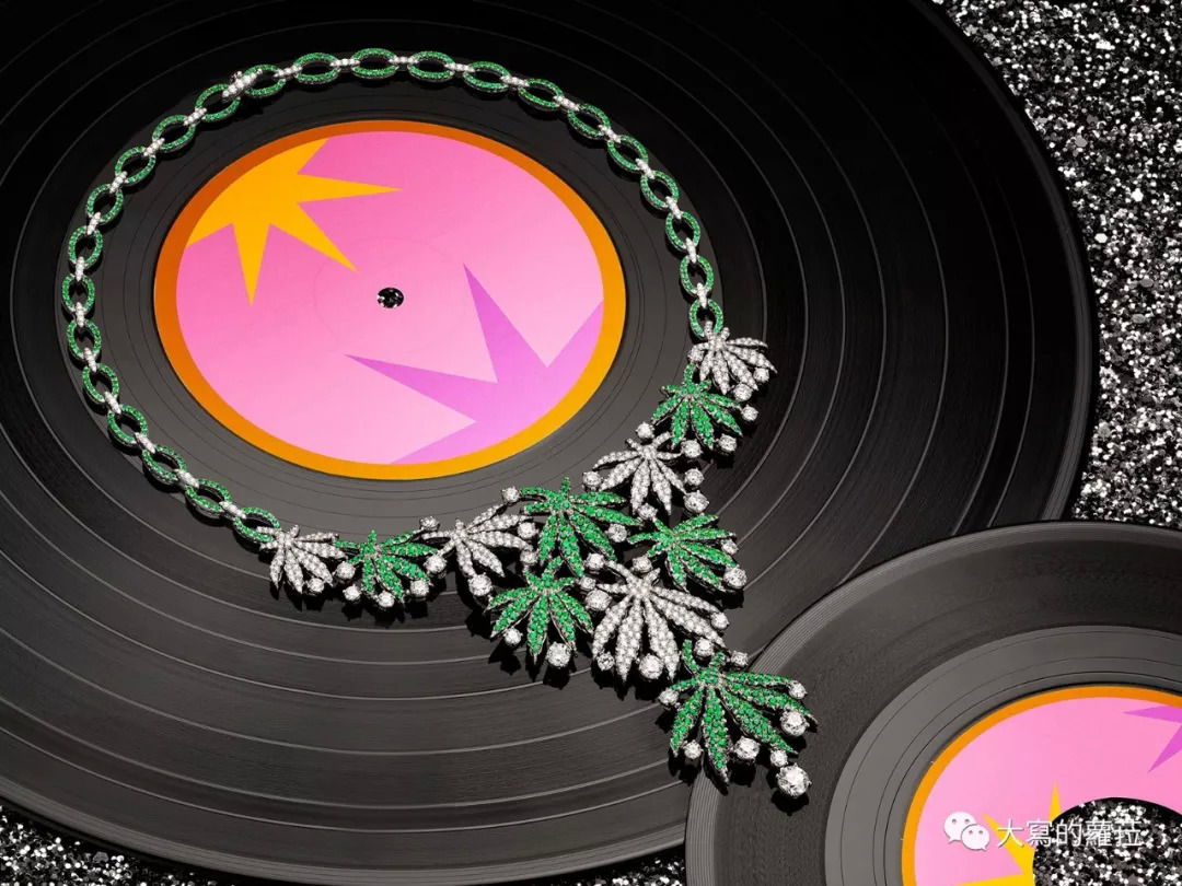 △ 宝格丽Wild Pop高级珠宝系列Happy Leaves项链,叶片镶嵌祖母绿和密镶钻石。