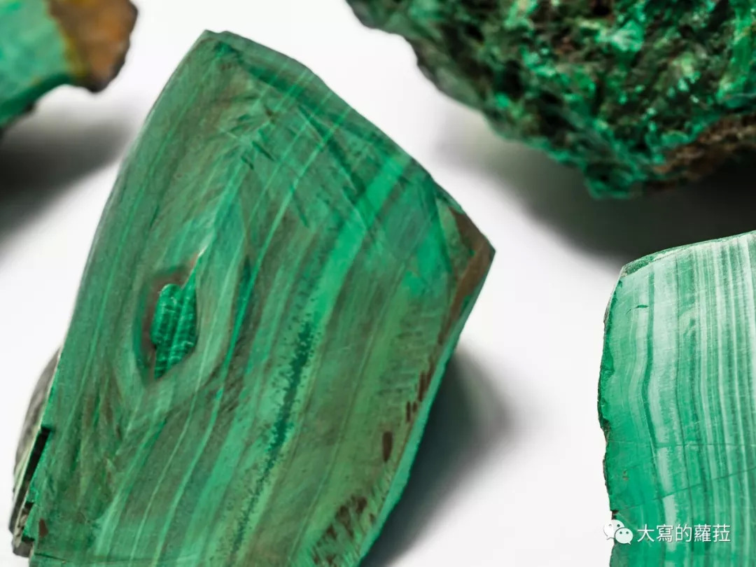 △ 孔雀石拥有翠绿色彩以及自然独特的纹路。