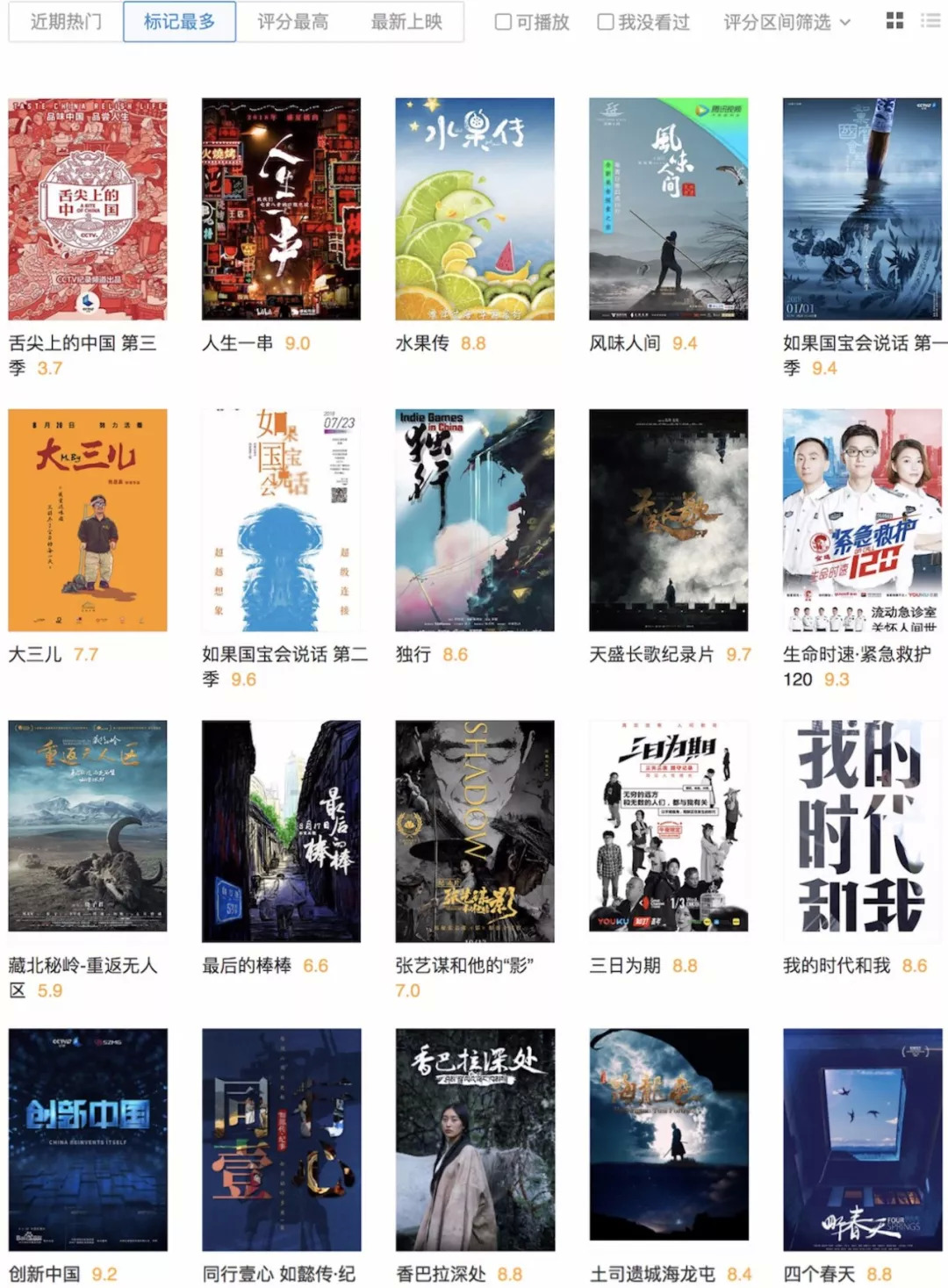 10月28日,纪录片《风味人间》播出后,陈晓卿“熟悉的味道”再次撩拨起人们的味蕾,引发观剧热潮,豆瓣评分也达到9.1分。纵观今年已经播出的纪录片,整体市场不断回温,品质继续走高。据统计,2018年豆瓣标记人数前20的国产纪录片中,有15部拿到了8分以上的评分。