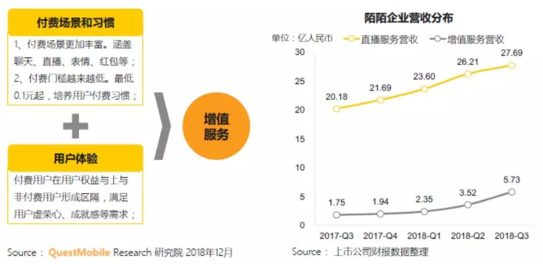 以典型社交+直播平台陌陌为例,2018年Q1以来,其增值服务营收呈现快速增长,在整体营收构成的占比从7.6%提升至15.7%,平台的收入结构更多元化。