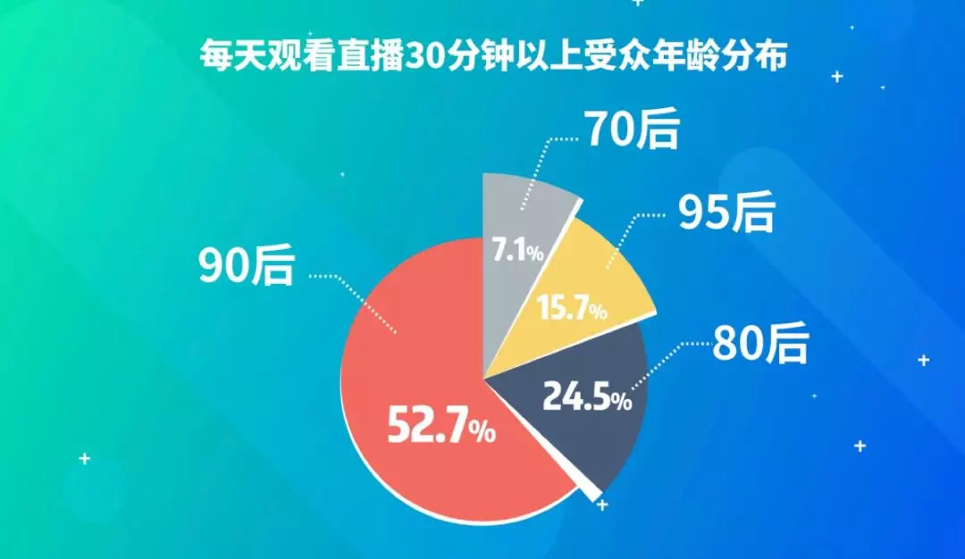 《2018主播职业报告》显示,68.4%的主播为90后,95后主播也占到15.7%。职业主播中90后更是占到72.5%。主播已经成为一种典型的年轻人职业。而国家人力资源和社会保障部公布的数据也显示,2016年应届高校毕业生最向往的新兴职业排行榜中,有54%选择了网红主播,其次是配音员、化妆师、游戏测评师。