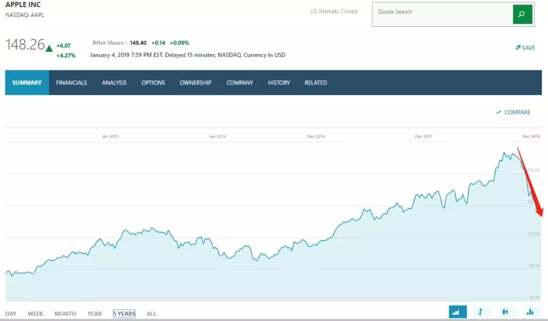 纵观苹果5年来股价走势图,起起伏伏中,没有一次跌幅像这一次来的凶猛。