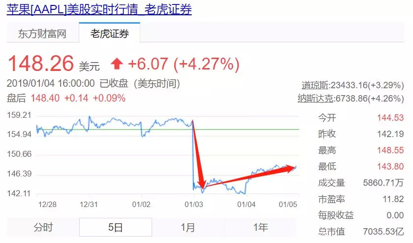 苹果5日内股价走势图
