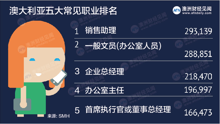 统计结果显示,销售助理是澳大利亚最常见的岗位,在职人数感到293,139人。相比之下,从业人数最少的岗位为蹦极大师和狩猎导师,每项职业在业人数仅为6人。