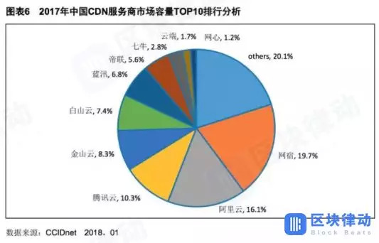 对于流媒体越来越重的今天,流量已经不再是稀缺资源,传统 CDN 的价格也在不断下降,以满足内容服务商的需求。按照 2018 年 1 月的中国 CDN 市场份额来看,阿里、网宿、腾讯和金山拿下了中国 50% 的市场份额,拥有 150 万台玩客云的迅雷网心科技只有 1.2% 的市场份额。