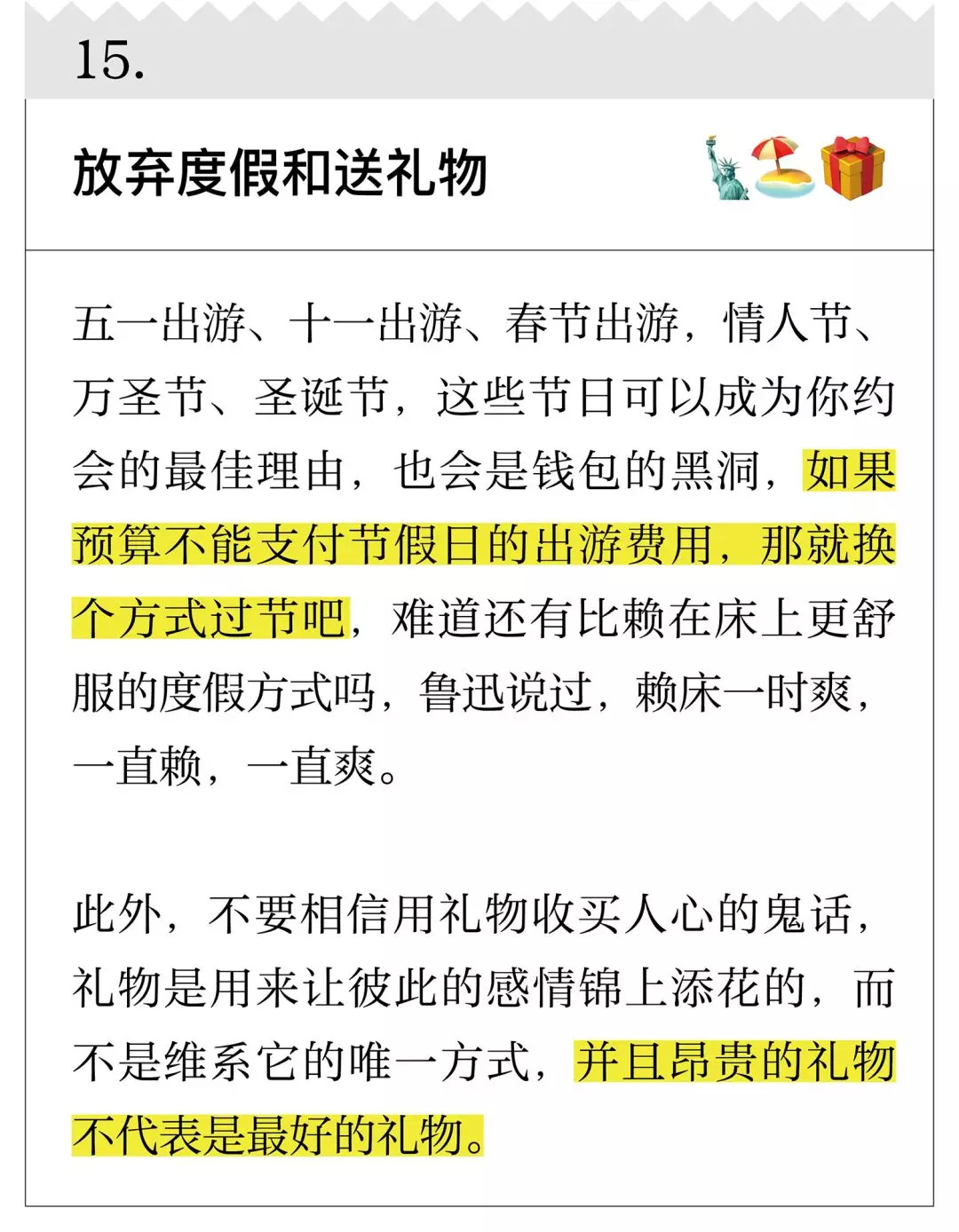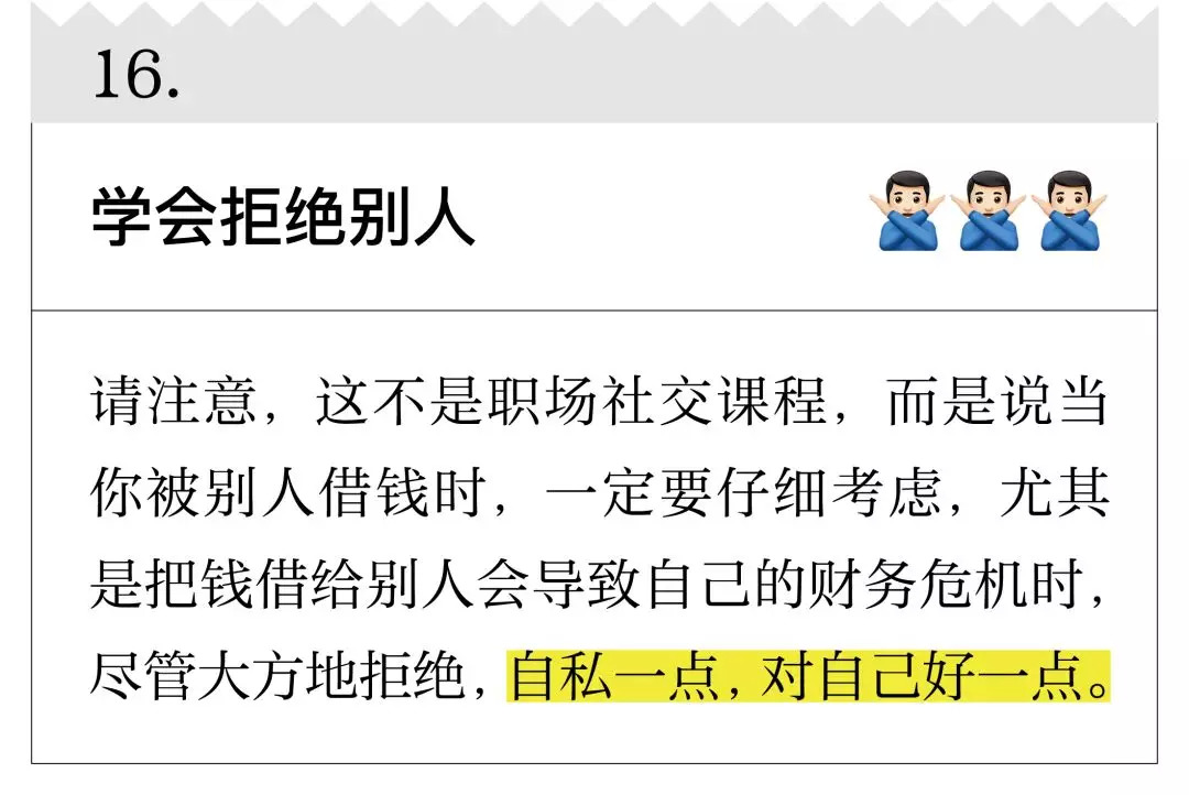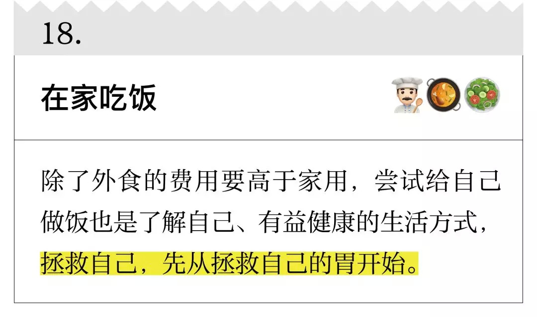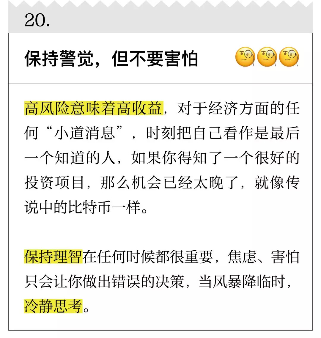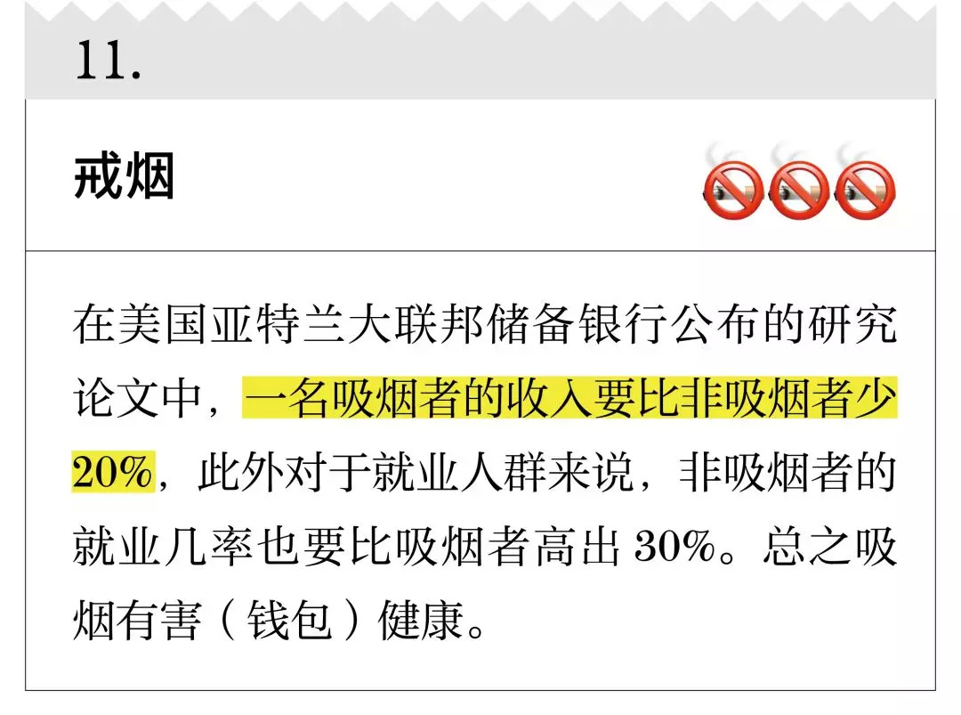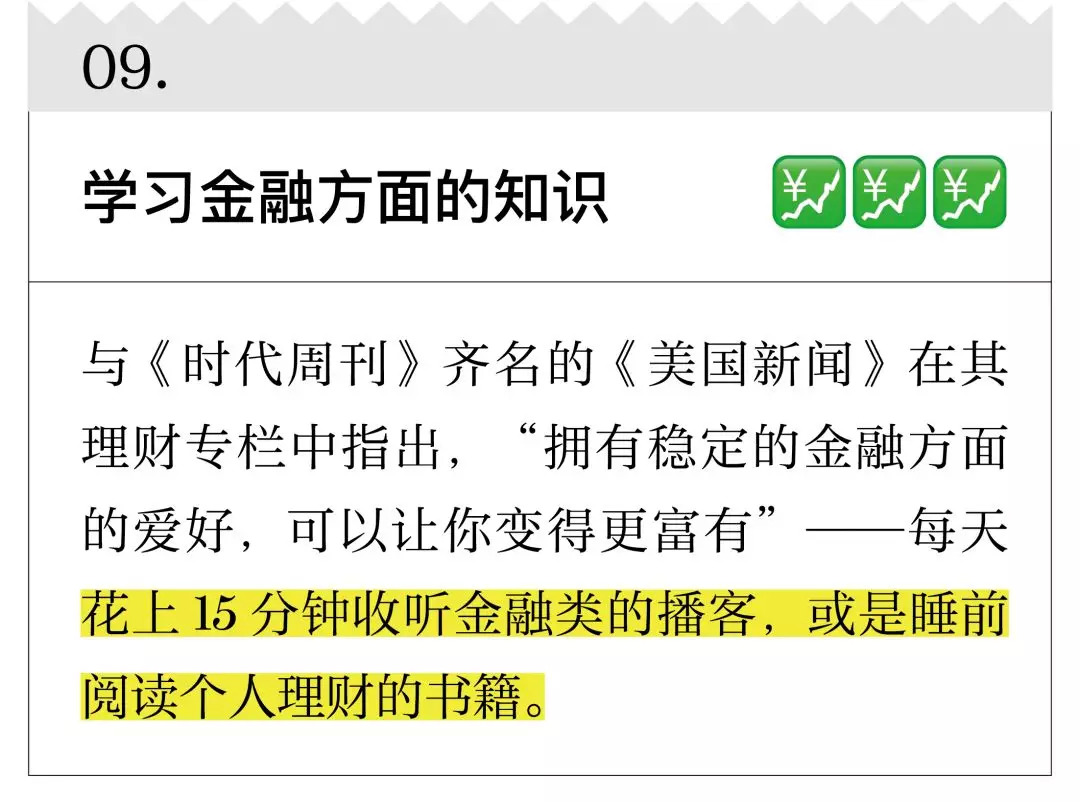 我先声明,你现在看到的公号并不是一个理财公号,但你要相信,我更擅长的是整理和筛选。下面20 条关于改善财务状况的建议,很多来自金融学家、经济学家,虽然不能让你一夜暴富,但起码能让生活过得去,以及,让你下一年的年度账单变得好看一些。