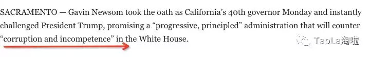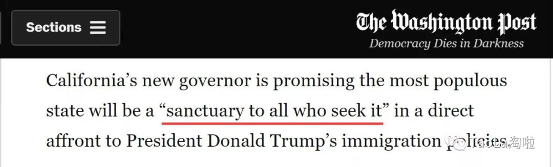 根据华盛顿邮报报道,加州新任州长承诺:这个人口最多的州,将成为“所有寻求庇护者的避难所”,这也是对总统川普移民政策的直接侮辱。