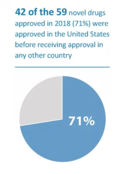 尽管FDA与其他国家的监管机构的监管程序差异很大,但2018年批准的59种新药中有42种(71%)最先获得美国批准。