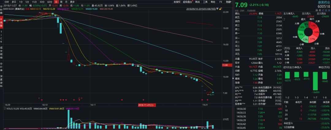 2、如果说是为了吸引眼球“没事找事”,这还可以理解。但在质疑后,康美股价连续几个跌停,短期跌了43%,其中还放出天量。这样的联动,很难说是巧合,是不是恐慌情绪叠加了砸盘?