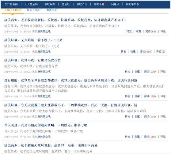 4、康美的股吧里,不停的有人发布没有任何实质内容的帖子,手动“置顶”,铺天盖地。按照常理,如果不看好一个股票,我肯定就不买,更不会浪费时间去股吧持续唱空。那么,到底是什么人在义务性的地唱空?