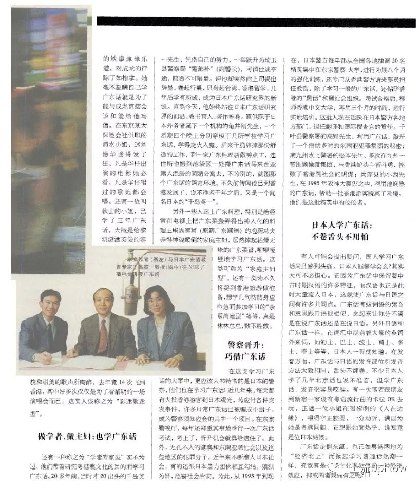 当时,NHK连续几年播放“广东话讲座”,推出了《亚洲语乐纪行 旅行广东话》的节目,通过把旅行记和语言讲座相结合的形式,方便大家的日语入门。