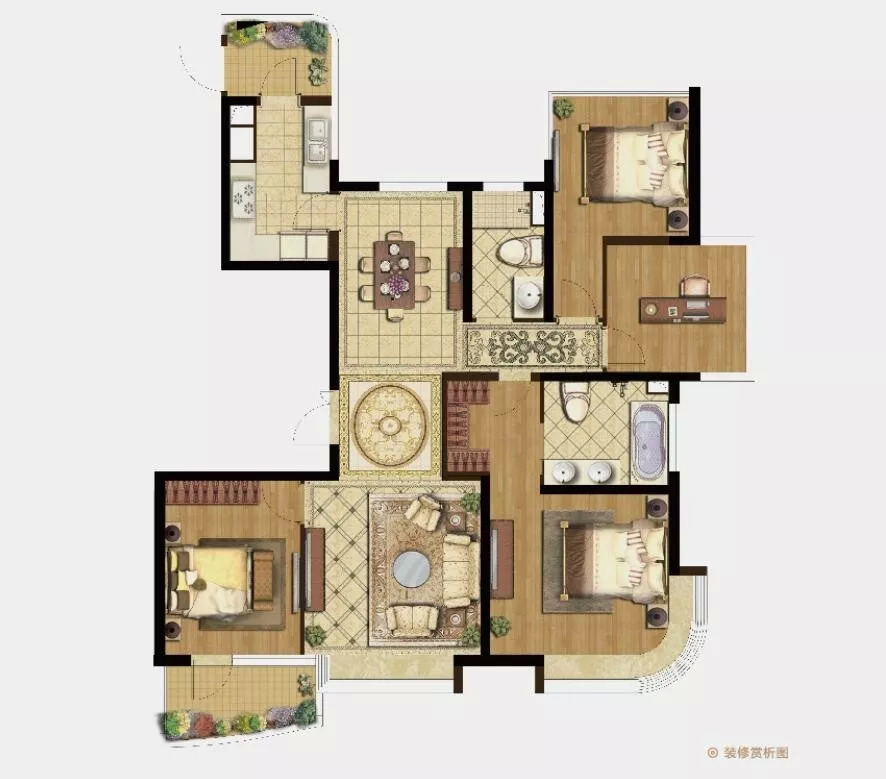 其余三家都是套房两卫设计,格局经典,很适合家庭居住。有置业意向的朋友们可以根据自身需求和基本预算来进行选择。