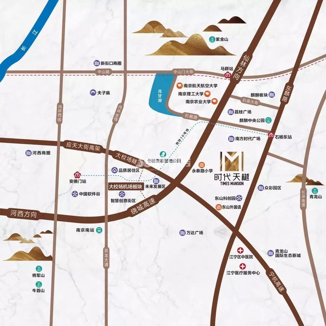时代天樾在麒麟科创园和青龙山新城之间。交通方面:2公里内麒麟有轨电车已经运营,还有规划中的10号线、12号线和13号线。商业配套方面:带约8万方综合体商业,小区一街之隔华东片区最大的生鲜物流批发市场众彩物流,向北3公里的南方时代购物广场还有一个规划中的荔枝广场。