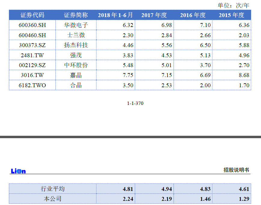 根据招股书,公司2015-2018年上半年的应收账款周转率分别为2.50次/年、2.85次/年、3.31次/年和3.18次/年,公司称主要由于公司半导体分立器件芯片业务客户较为分散,且以中小客户为主。此外存货周转率偏低,公司称由于目前仍处于市场持续开发、业务规模持续拓展阶段,为能够及时满足因业务量上升引起的生产需求,适当提高了产品备货量。