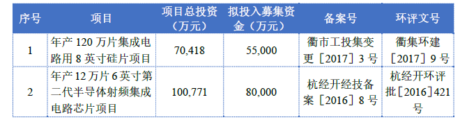 其中,8英寸硅片项目总投资约7.04亿元,拟投入募集资金5.5亿元,项目用地约136亩,将新增单晶炉等共计360台(套)设备,项目设计年产能为120万片集成电路用8英寸硅片,项目计划建设期为24个月,项目达产后预计年新增销售收入4.8亿元。