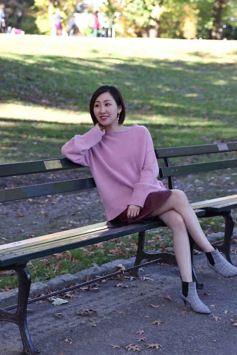 这一身也是别出心裁,酒红色的下装、内搭焦糖色的毛衣,还加上前面说到的少女心粉色外套,配色看上去也很和谐,自带文艺气质~▼