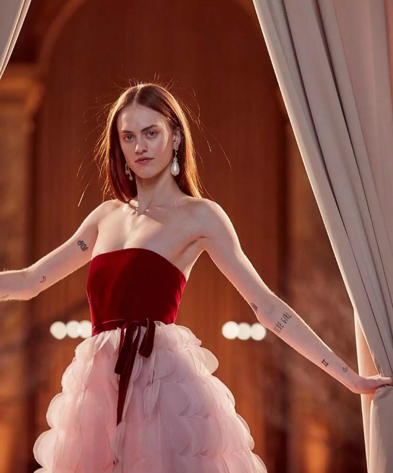 粉色面积越大,少女感越强。Oscar de la Renta这条裙子超美,Angelababy 曾穿过。▼