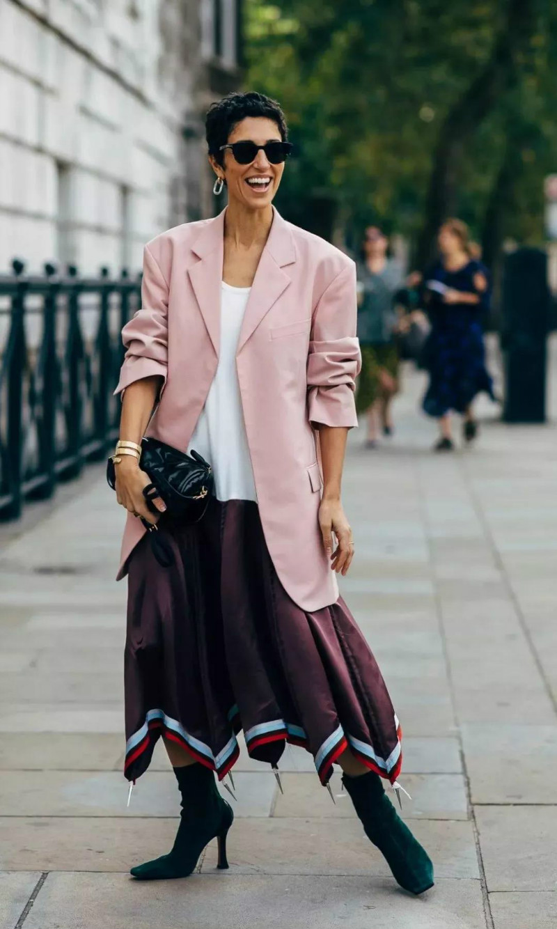 很多人担心酒红色容易穿得老气,试试用少女心十足的粉色来中和一下吧。