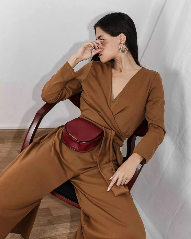 酒红色的小包很多人都有一只,试试用它来搭配焦糖色衣服。▼