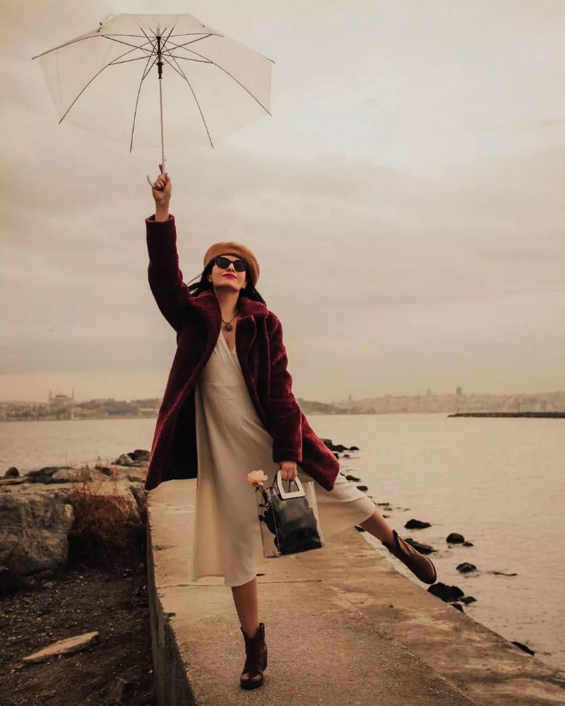 是的,酒红色虽然不像大红色那么张扬、有冲击力,却有着独特的复古感,不张扬的妩媚,特别适合秋冬穿。▼