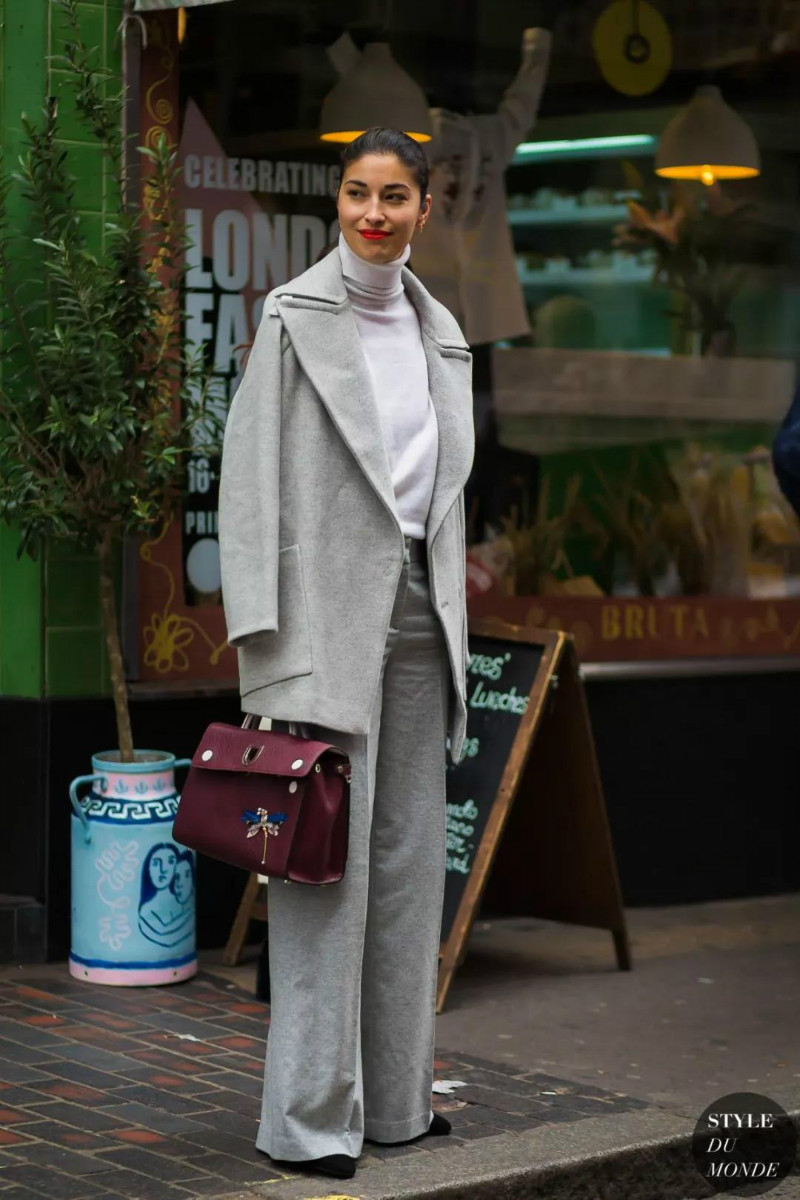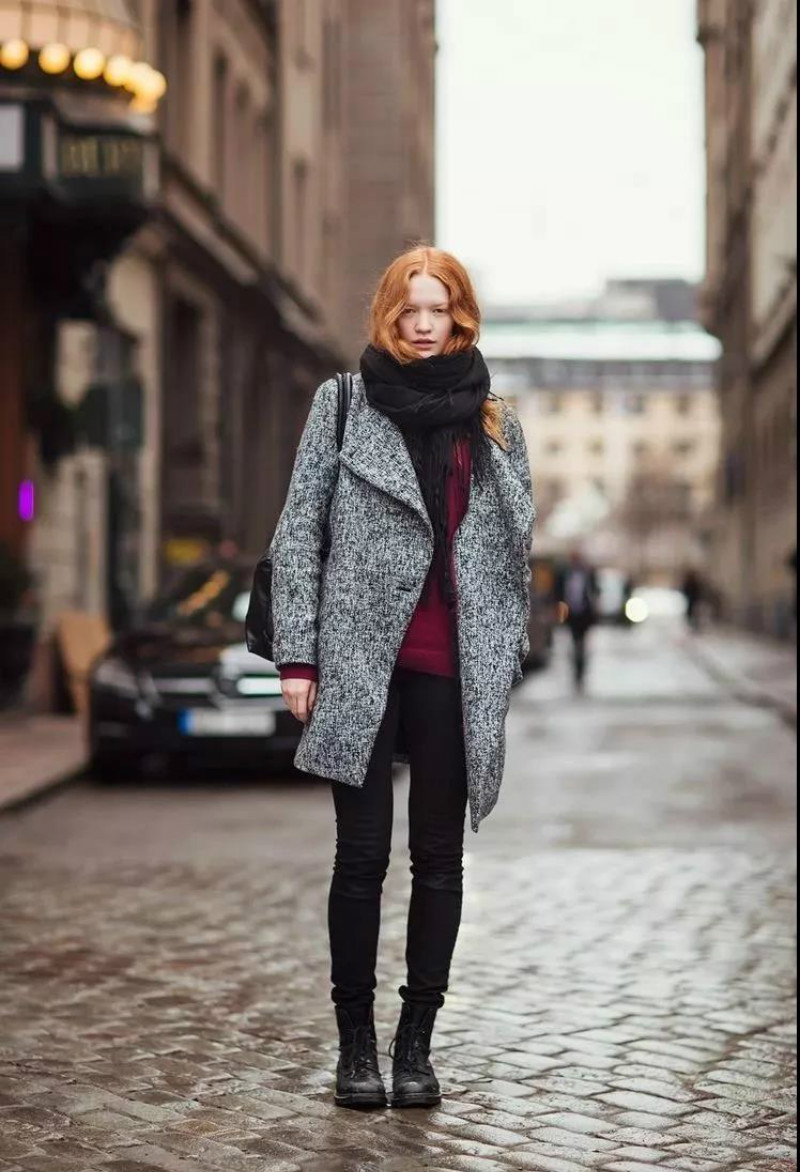 短一点的灰大衣可以这样搭,显得更精神。▼