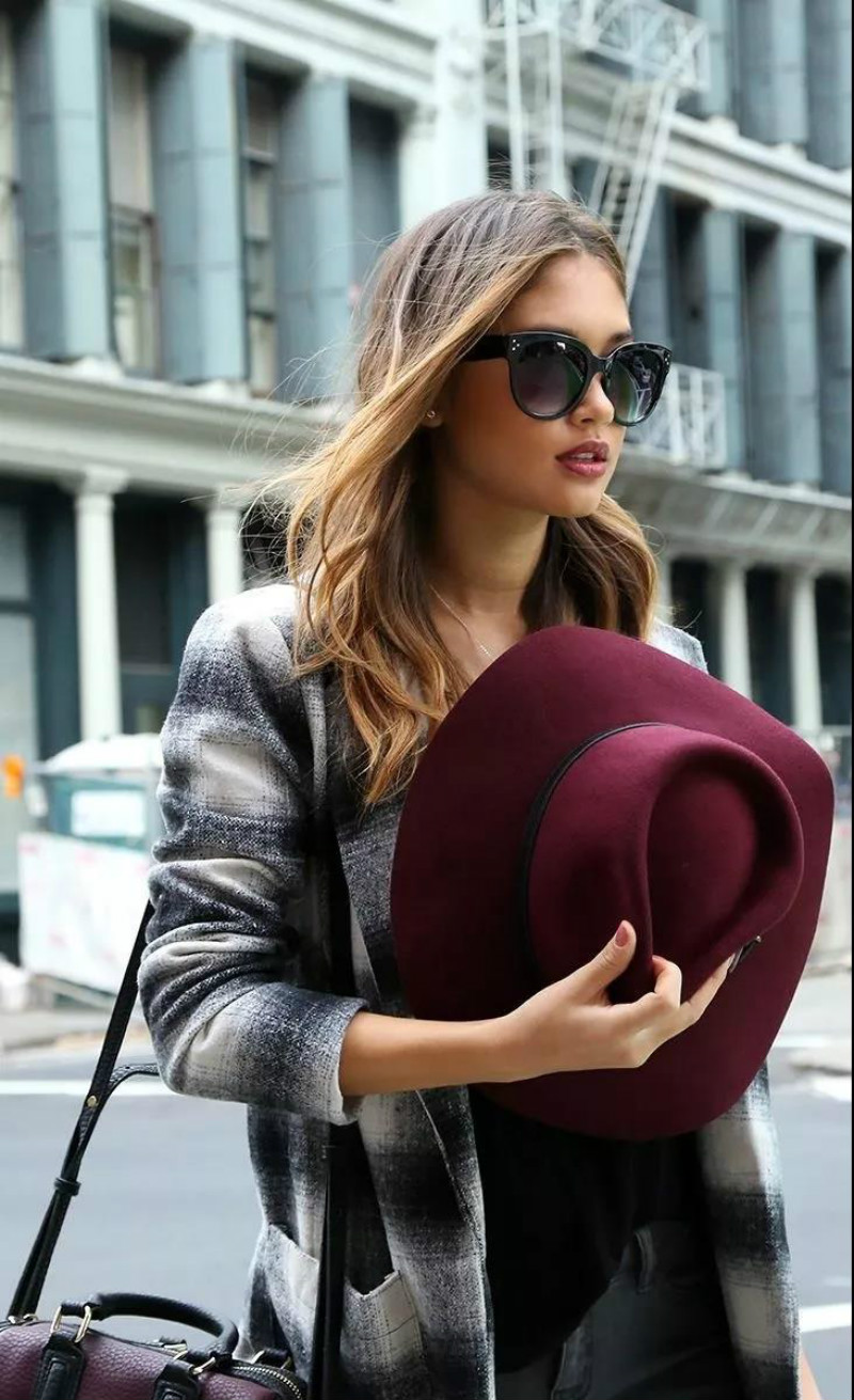 今年格子外套不是非常流行嘛,灰色格子单品尤其多,我发现酒红色和灰格子是绝配!