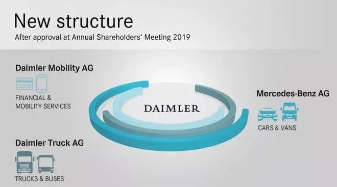 2018年7月,戴姆勒集团宣布将在2020年进行集团架构重组,届时,戴姆勒集团将包括三个独立上市公司:梅赛德斯-奔驰集团,戴姆勒卡车集团和戴姆勒移动出行公司。这是1926年戴姆勒-奔驰公司成立来第三次重大结构调整。