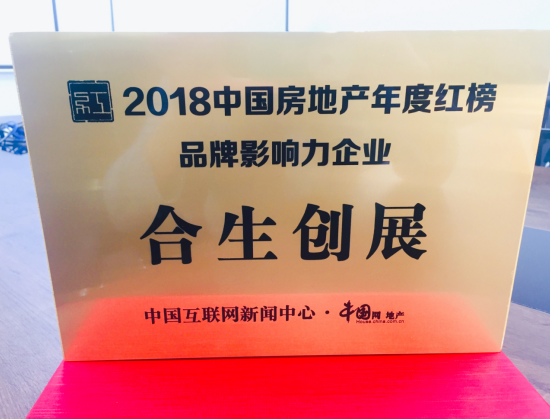 合生创展(00754.HK)凭借其在行业内多年的品牌发展及经验获得2018年中国房地产年度红榜品牌影响力企业。