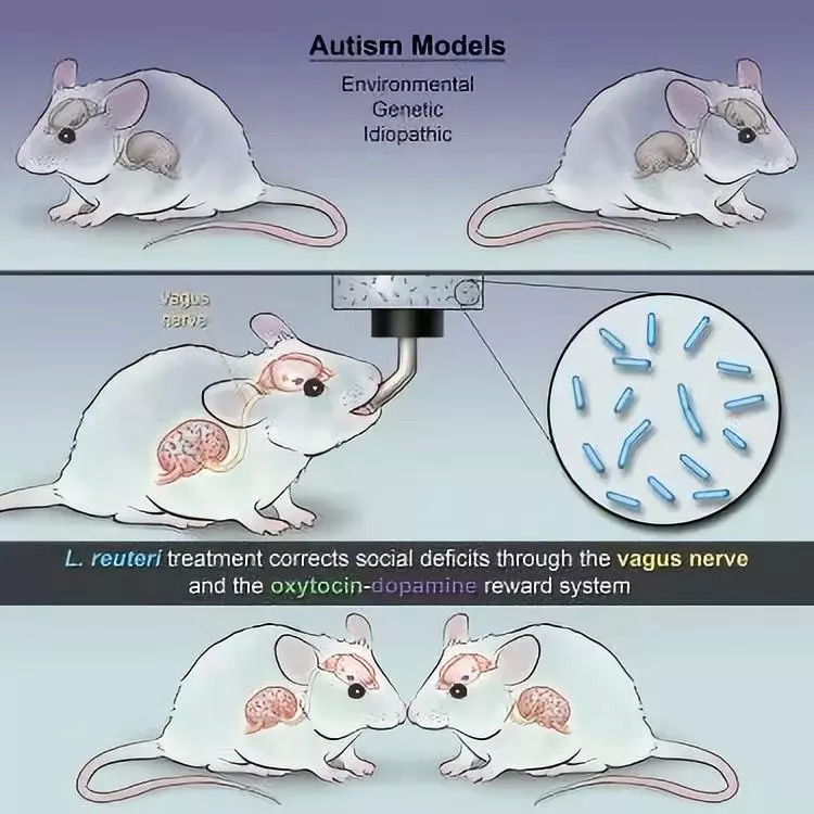 而事实确实证明,罗伊氏乳杆菌能够改善甚至消除自闭症行为,即使是在那些没有肠道微生物的老鼠身上,或者是在被丙戊酸诱导成自闭症的老鼠身上,这种结论都得到了证实。